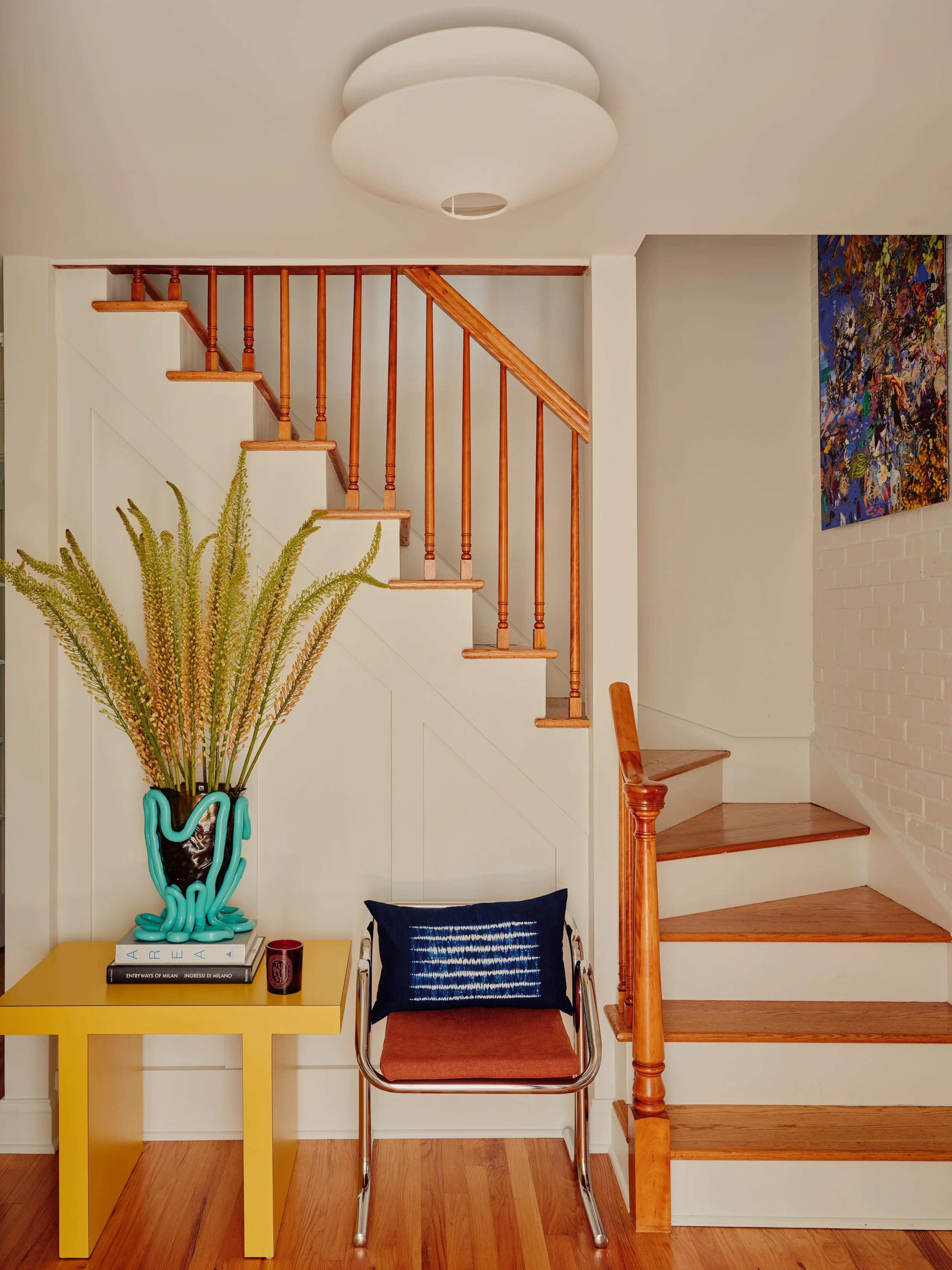 This 1960s Dutch-style home was transformed into a warm and welcoming space for a young family who enjoys hosting. The design combines bold colors, vintage antiques, and midcentury modern accents to create a cozy yet stylish atmosphere.